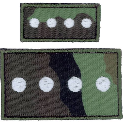 Hodnostní označení Armády České republiky Vyšívané hodnostní označení pro vojenské polní stejnokroje Armády České republiky. Odpovídá Stejnokrojovému výnosu 2012. Nášivky jsou na rubové straně opatřeny stuhovým uzávěrem (suchý zip) pro připevnění na uniformu. Připevnění: stuhovým uzávěrem Rozměry: malá: 45 x 20 mm velká: 68 x 40 mm