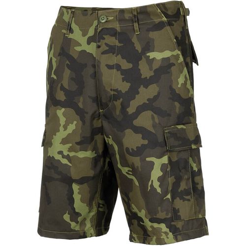 Kraťasy BDU zapínání na zip a knoflík dvě průhmatové kapsy na bocích dvě kapsy vzadu, zapínání chlopní na knoflíky dvě kapsy na nohavicích, zapínání chlopní na knoflíky nastavitelná šířka pasu pomocí stahování na bocích poutka přizpůsobená pro široký opasek (6 cm) Materiál: 65 % polyester, 35 % bavlna Výrobce: MFH, Německo Kód výrobce: 01502