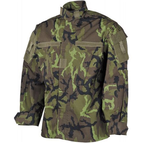US polní armádní blůza v modernizovaném stylu ACU (Army Combat Uniform) Dvě šikmo posazené kapsy na hrudi se stuhovými uzávěry. Ohnutí loktů lze vyměkčit vložením polstrování. Dvě náramnenní kapsy jsou opatřeny stuhovými uzávěry pro připevnění nášivek. Na spodní části levého rukávu 3 úzké otevřené kapsičky určené pro psací potřeby. Na prsou našity na obou stranách stuhové uzávěry pro umístění jmenovky, mezi nimi, na chlopni, panel stuhového uzávěru pro umístění hodnosti. Zapínání vpředu pomocí zdrhovadla, krytého chlopní, kterou lze rovněž sepnout stuhovým uzávěrem. Límec lze zajistit pomocí stuhového uzávěru ve vzpřímené poloze. Límec pak chrání krk a omezuje zapadávání prachu a písku pod oděv. Konce rukávů je možno stáhnout pomocí stuhového uzávěru. Materiál: 100 % bavlna, RipStop (s protizátrhovou mřížkou) Hmotnost: 615 g (vel. L) Výrobce: MFH, Německo Kód výrobce: 03383