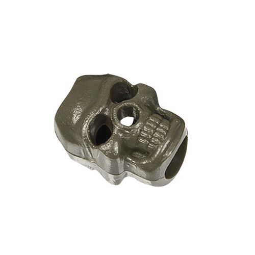 Stylová koncovka ve tvaru lebky. Lze navléknout na tkanici, šnůru apod. do tloušťky 6 mm Koncovky jsou často využívané jako součásti oděvů, batohů, textilních sáčků apod. k zafixování polohy šňůrky nebo gumy. Provedení: oboustranná - 2 obličeje Výška: 18 mm Materiál: plast Výrobce: STURM, Německo