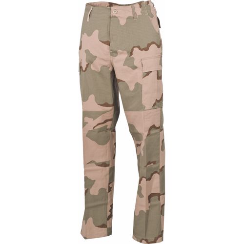 Klasické kalhoty US ARMY (BDU - Battle Dress Uniform - polní bojová uniforma) vyrobené z odolné tkaniny s protizátrhovou úpravou. vhodné do teplého klimatu. Kalhoty mají celkem šest kapes, které umožní uložit vše potřebné - dvě kapsy vpředu, dvě kapsy vzadu kryté patkami, dvě velké (vakové) kapsy na bocích stehen rovněž kryté patkami. Zapínání poklopce a patek kapes je řešeno na knoflíky. Na bocích pasové linie se nacházejí stahovací pásky pro pohodlnou úpravu obvodu Rovněž konce nohavic je možné stáhnout provlečenými tkanicemi. Zdvojení materiálu v oblasti sedu a kolen zvyšuje odolnost v nejnamáhanějších místech. Materiál: 100 % bavlna RipStop (osnova materiálu zpevňuje látku a brání šíření případné trhliny)