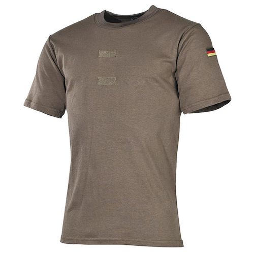 Profesní tričko německé armády Bundeswehr používané s polním stejnokrojem. Tričko BW Tropenhemd je zhotovené z odolného směsového materiálu s elastickým nápletem kolem krku. Na hrudi panely stuhového uzávěru pro přichycení hodnostního značení. Na rukávech vlaječky Spolkové republiky Německo. Materiál: 60 % bavlna, 40 % polyester Dodávané velikosti: německé značení 5-9 (odpovídá mezinárodnímu značení S - XXL) Výrobce: MFH, Německo