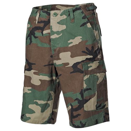 Kraťasy z lehké bavlny se zpevňující osnovou RipStop Kraťasy ve stylu klasických dlouhých kalhot polní bojové uniformy US ARMY (kalhoty US ARMY (BDU - Battle Dress Uniform). Jsou zhotoveny z lehké bavlny opatřené zpevňující osnovou RipStop, která brání šíření případných trhlin. Kalhoty mají dvě boční průhmatové kapsy se šikmými vstupy, dvě zadní kapsy kryté klopami a na bocích stehen vakové kapsy rovněž chráněné klopami. Klopy kapes jsou připínány knoflíky. Obvod v pase lze snadno upravit bočními stahovacími pásky. Ke kalhotám lze použít opasek do maximální šířky 55 mm. Zapínání poklopce je řešeno knoflíky. Kalhoty najdou uplatnění u příznivců kraťas zhotovených v military stylu, kterým v nabídce civilních modelů scházejí krátké kalhoty v oblíbené vojenské kamufláži. Materiál: 100 % bavlna, RipStop (s protizátrhovou osnovou) Hmotnost: 360 g (vel. L) Výrobce: MFH, Německo