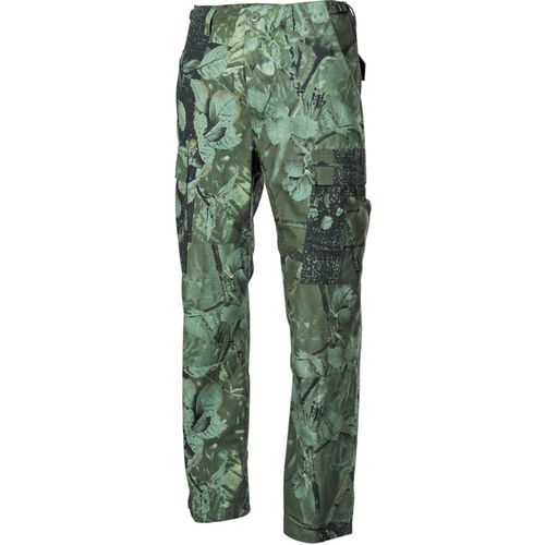 Klasické kalhoty US ARMY (BDU - Battle Dress Uniform - polní bojová uniforma) vyrobené z odolné tkaniny s protizátrhovou úpravou. vhodné do teplého klimatu. Kalhoty mají celkem šest kapes, které umožní uložit vše potřebné - dvě kapsy vpředu, dvě kapsy vzadu kryté patkami, dvě velké (vakové) kapsy na bocích stehen rovněž kryté patkami. Zapínání poklopce a patek kapes je řešeno na knoflíky. Na bocích pasové linie se nacházejí stahovací pásky pro pohodlnou úpravu obvodu Rovněž konce nohavic je možné stáhnout provlečenými tkanicemi. Zdvojení materiálu v oblasti sedu a kolen zvyšuje odolnost v nejnamáhanějších místech. Materiál: 100 % bavlna RipStop (osnova materiálu zpevňuje látku a brání šíření případné trhliny)