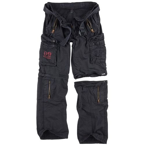 Royal Outback Kapsáče s odepínatelnými nohavicemi 2v1. Díky zipu ideální kombinace pro ty, kteří se nemohou rozhodnout, zda kraťasy nebo dlouhé kalhoty. Po bocích stahovatelný pas pomocí textilních tkanic Součástí kalhot je i široký textilní opasek, který je ve "Vintage" úpravě (mírné, uměle vytvořené poškození, které se dál nešíří). Zapínání je na knoflík a zdrhovadlo. Dvě průhmatové kapsy v pase, na nich menší uzavíratelné kapsy na zdrhovadlo. Dvě kapsy na nohavicích v oblasti stehen uzavíratelné na druky, dekorativní potisk Dvě menší zadní kapsy. Odepínatelné nohavice v oblasti pod koleny - delší kraťasy. Na odepínatelných nohavicích jsou dvě malé, svislé kapsy uzavíratelné na zdrhovadlo. Materiál: 100 % bavlna Hmotnost: 1010 g (vel. L) Výrobce: Surplus, Německo Kód výrobce: 05-3701